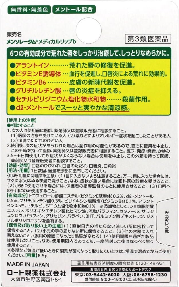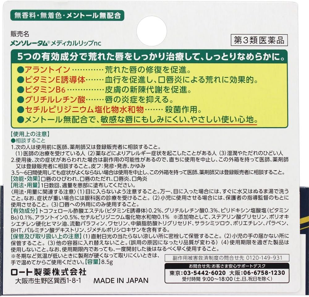 The difference between "Mentholatum Medical Lip b" and "Mentholatum Medical Lip nc" mainly lies in their ingredients and effects. Here’s a detailed explanation:
