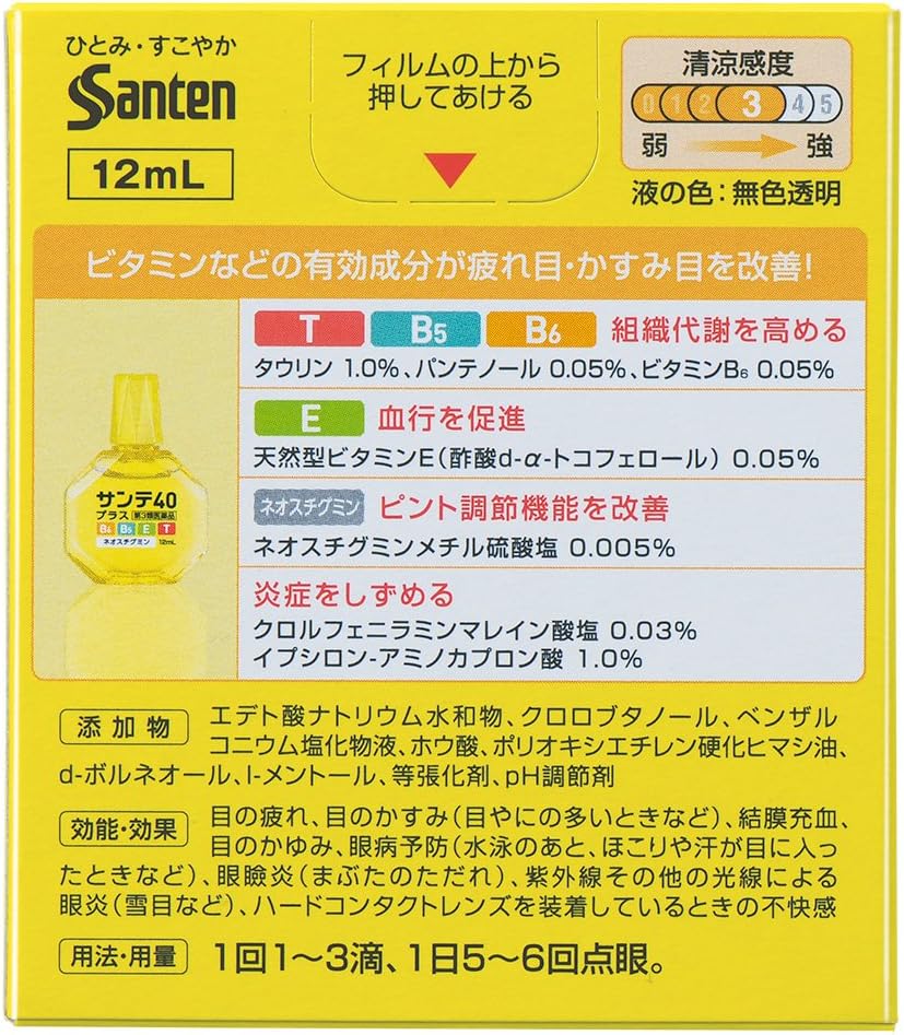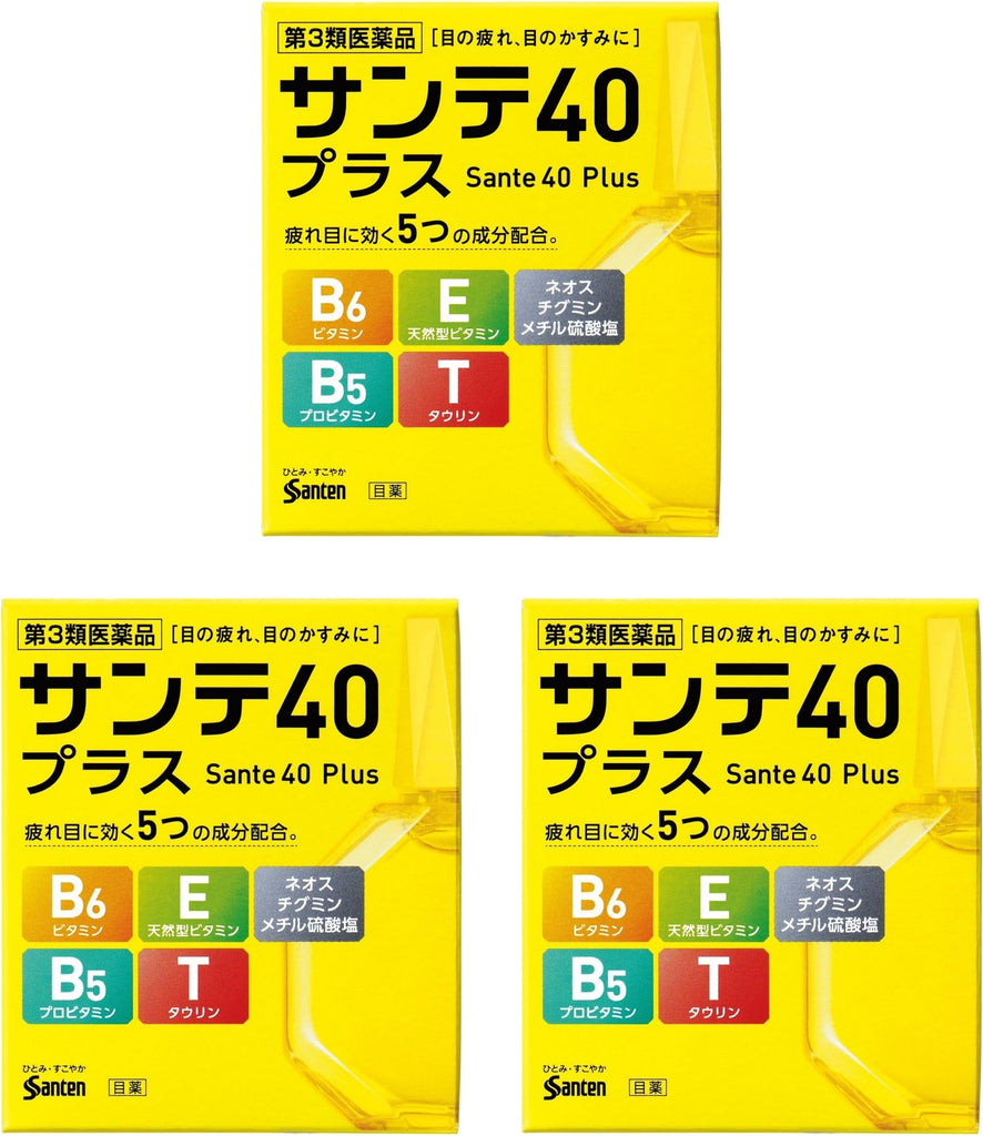 Sante 40 Plus is an eyedrop whose 5 ingredients, including nutritional components (vitamins and amino acids) that activate eye function, are effective for tired and blurred vision.